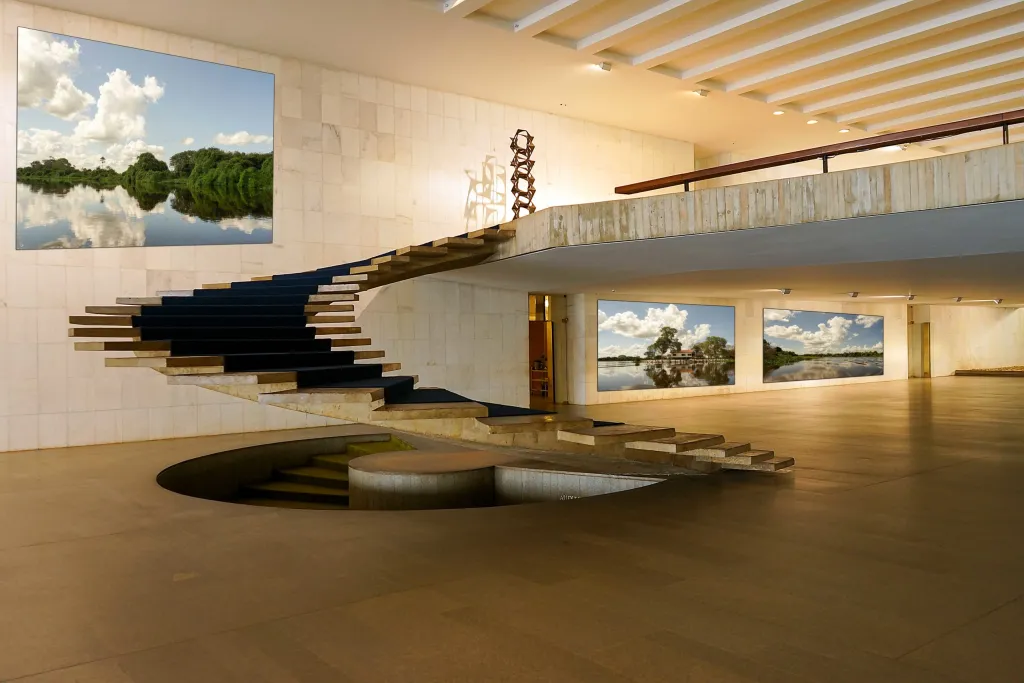 Le rio Miranda est une rivière brésilienne qui coule dans l’État de Mato Grosso do Sul. C’est un affluent du río Paraguay dans lequel il se jette après avoir traversé le Pantanal. La végétation est luxuriante et les ciels nuageux magnifiques. Didier Gualeni expose ses photos dans ce lieu prestigieux et emblématique du brésil qu’est le Palais d’Itamaraty à Brasilia réalisé par l’architecte Oscar Niemeyer.