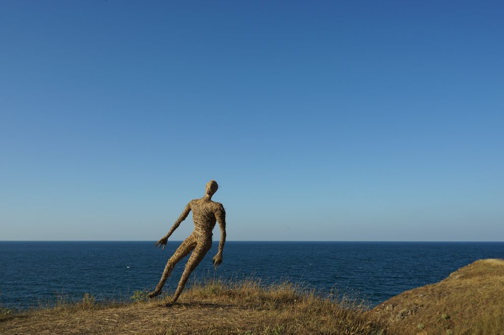 Homme de paille sur les rivages de la mer noire à Sinemoretz, Bulgarie